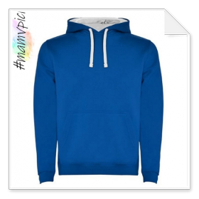 Mikina s kapucí a klokaní kapsou. Kapuce vyložená materiálem v kontrastní barvě. Šňůrky v kapuci v kontrastní barvě. Lemovka na průkrčníku a klokaní kapse. Lemování rukávů a spodní patent v žebrovaném úpletu 1x1.