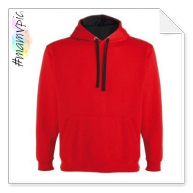 Mikina s kapucí a klokaní kapsou. Kapuce vyložená materiálem v kontrastní barvě. Šňůrky v kapuci v kontrastní barvě. Lemovka na průkrčníku a klokaní kapse. Lemování rukávů a spodní patent v žebrovaném úpletu 1x1.