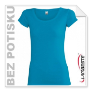 - kulatý slušivý výstřih s žebrovým úzkým lemem